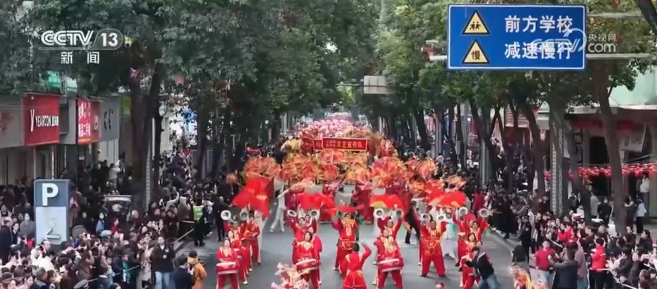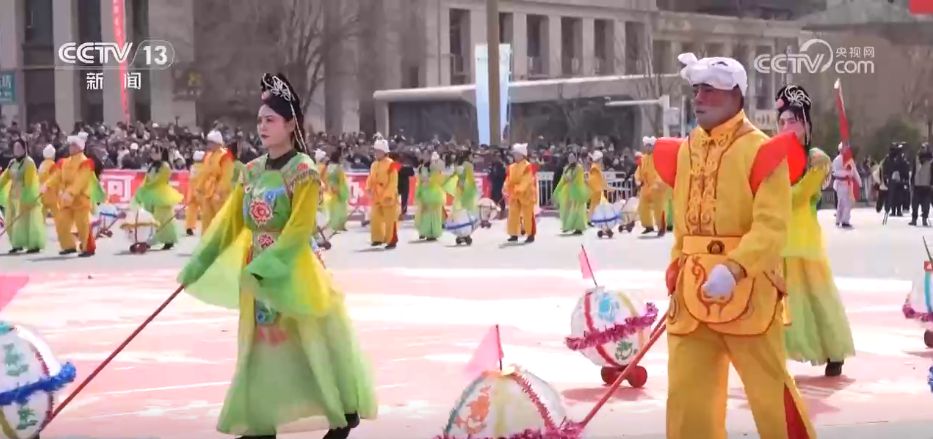 正在陕西健康市要旨乡区,千余实演出者身着彩服,脚持彩扇,踏着饱面1道巡回。舞龙舞狮、花饱子等保守节目取年夜路锣饱、挨连钱等中央特性习俗上演轮流明相,吸收了浩繁搭客战市平易近立足鉴赏。