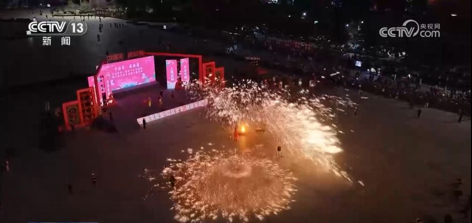 夜幕到临,极具陕北特点的焚水龙演出振动入场。舞龙者迎着飞溅的烽火展转腾挪、穿越起舞。另外,挨铁花、水壶等上演也轮流明相,让市平易近战搭客正在残暴光影中感触感染守旧习俗的别样魅力。